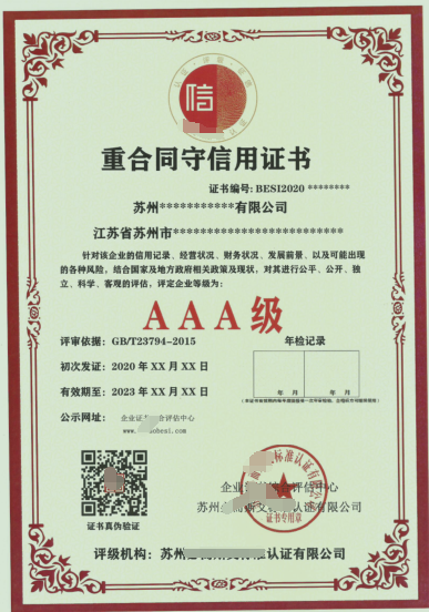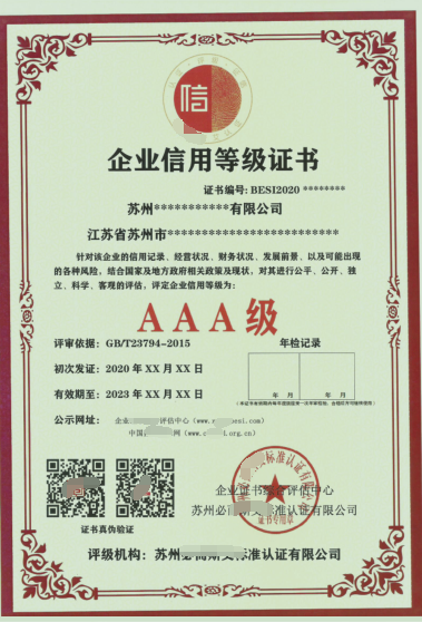AAA资信等级证书