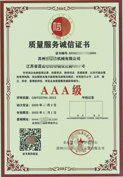 AAA质量服务诚信证书